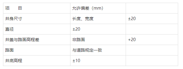 6、檢查井井口周邊50cm范圍內(nèi)用二灰土分層回填夯實(shí)至路面底基層,然后在瀝青砼面層下澆筑20cm后25號(hào)水泥砼加固,檢查井允許偏差應(yīng)符合: